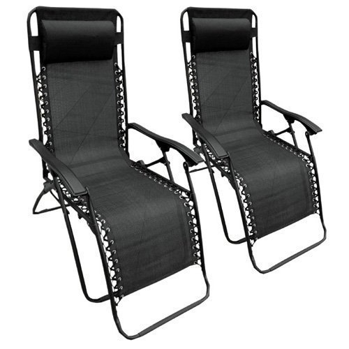 Jaques Zero Gravity Reclining Chair 2x Set This High Quality Zero Gravity Reclining Garden Chair is ideal for those lazy days of summer!!! Bring it on Adjustable padded headrest ideal for use on garden furniture. It drys quickly and can be easily wiped clean. The chair has a comfortable seat area and has a pillow on the backrest making it perfect for relaxing on those long summer nights. Features: All Black Stylish Model 2015 Jaques • Light weight and durable • Adjustable padded headrest • Locks into many different positions • Ergonomic design provides perfect comfort • Mesh bed fabric is durable, colour fast, and quick drying • Can be folded up instantly for easy storage and portability • Weather resistant frame, powder coated steel resists rust and wear Approx. Dimensions: • 165 x 65 x 112cm Colour: As Pictured