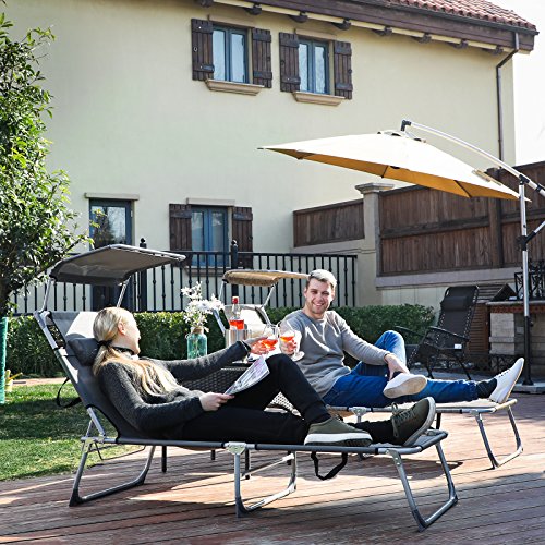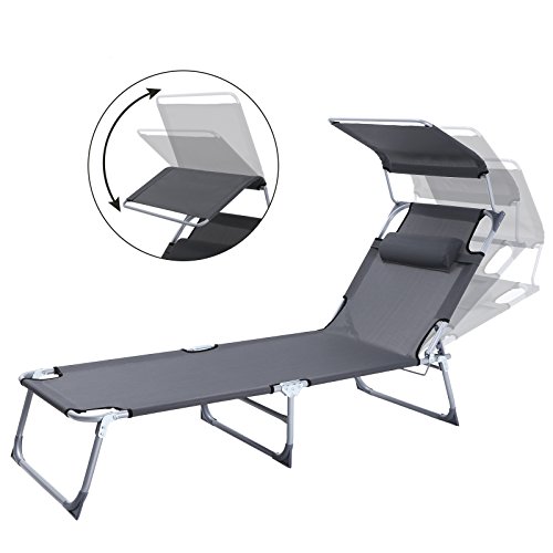 Take the time to lounge around in the sun with this ideal Songmics Sun Lounger this summer! Thanks to the multi-position backrest and sunshade, you can sit back just the way you like and enjoy the day. The materials in this outdoor furniture require no maintenance. Just wipe with a damp cloth for cleaning.